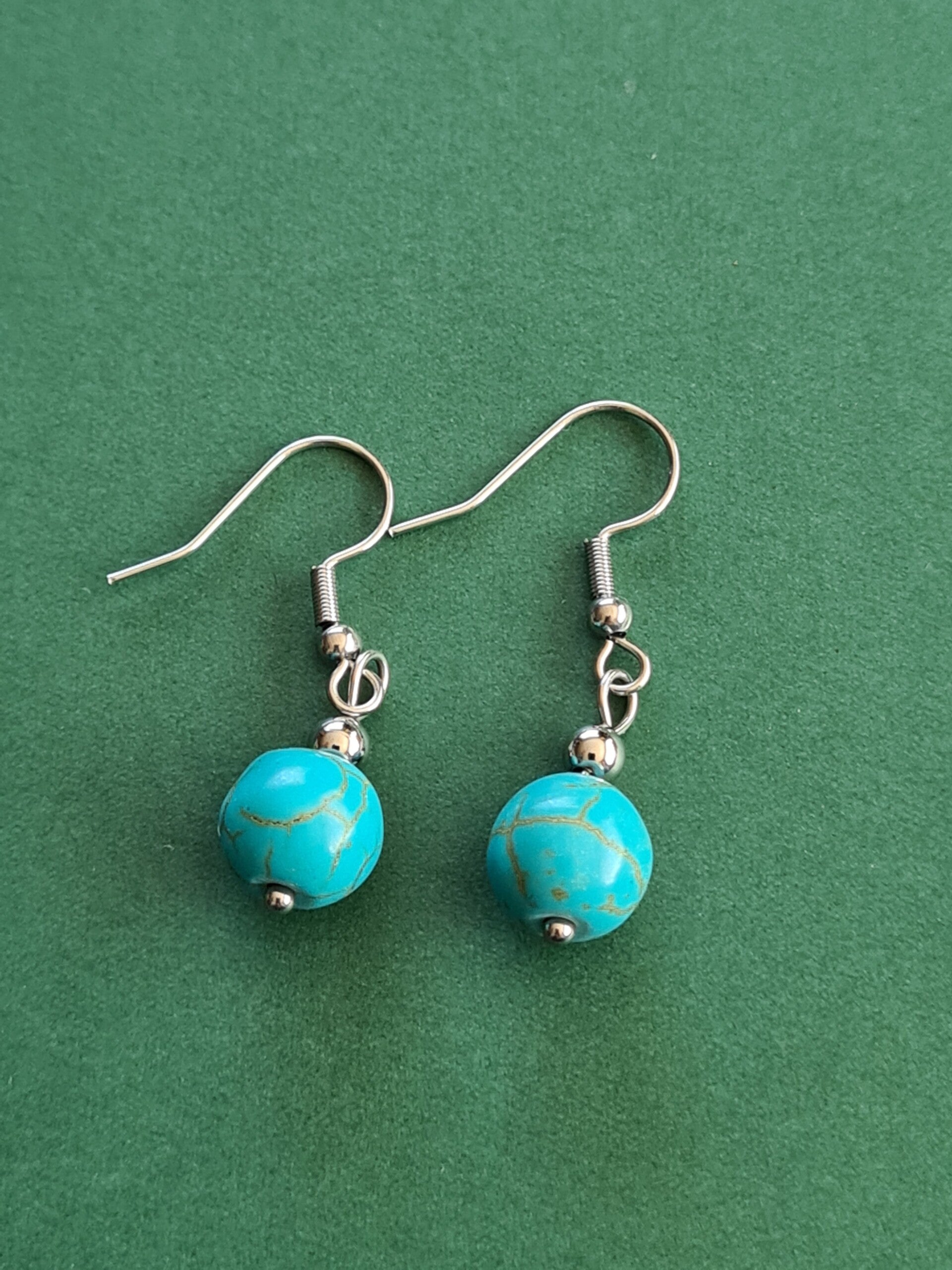 Handel is zilverkleurig en de kralen zijn licht blauw met een beetje bruin